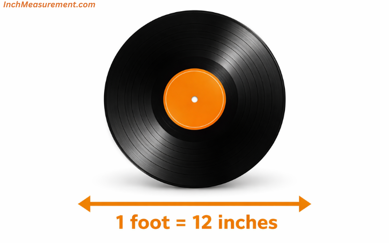 A standard vinyl record has a diameter of 12 inches, making it an exact example of one foot. These records are widely recognized and have been used for decades in music playback.