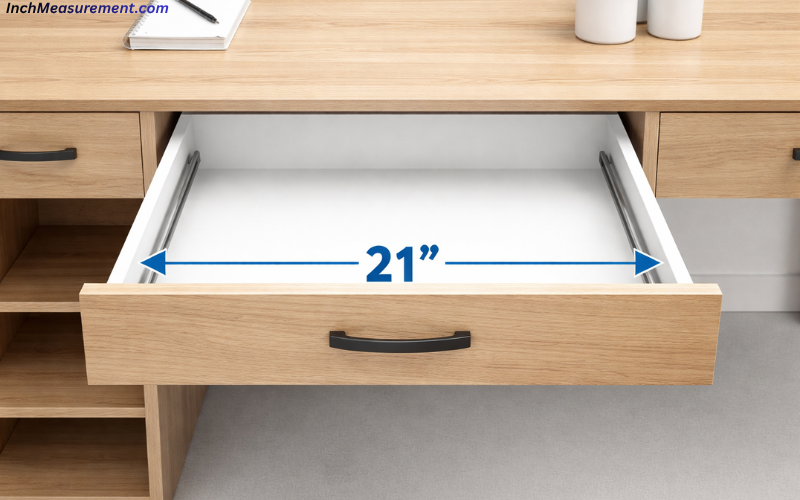 Desk drawers often measure around 21 inches in width. This size provides enough space to store office supplies, documents, and personal items.