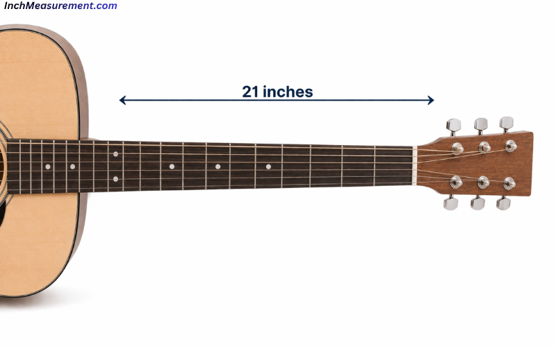 The neck of an acoustic guitar is typically close to 21 inches in length. This measurement spans from the guitar body to the headstock and plays an important role in the instrument’s playability.