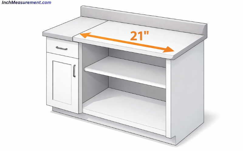 A 21-inch depth allows for storing dishes, pantry items, and small appliances. It keeps items within easy reach while maintaining a clean and organized appearance.
