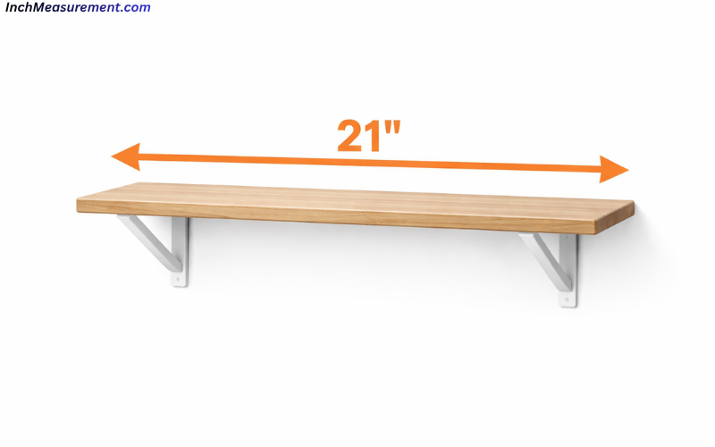 A wall shelf measuring 21 inches in length is a popular choice for small spaces. It provides enough room to display books, decorative items, or small plants.